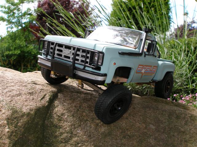 Der Chevy bot sich als Einstiegsmodell an, um bei den 1:16er Baumaschinen etwas mitspielen zu können. Ein Kollege überliess mir den alten Revell-Baukasten, und war auch so nett die Achsen anzufertigen - diese Möglichkeit hätte ich in meiner Werkstatt mangels Drehbank und Fräse nicht gehabt.